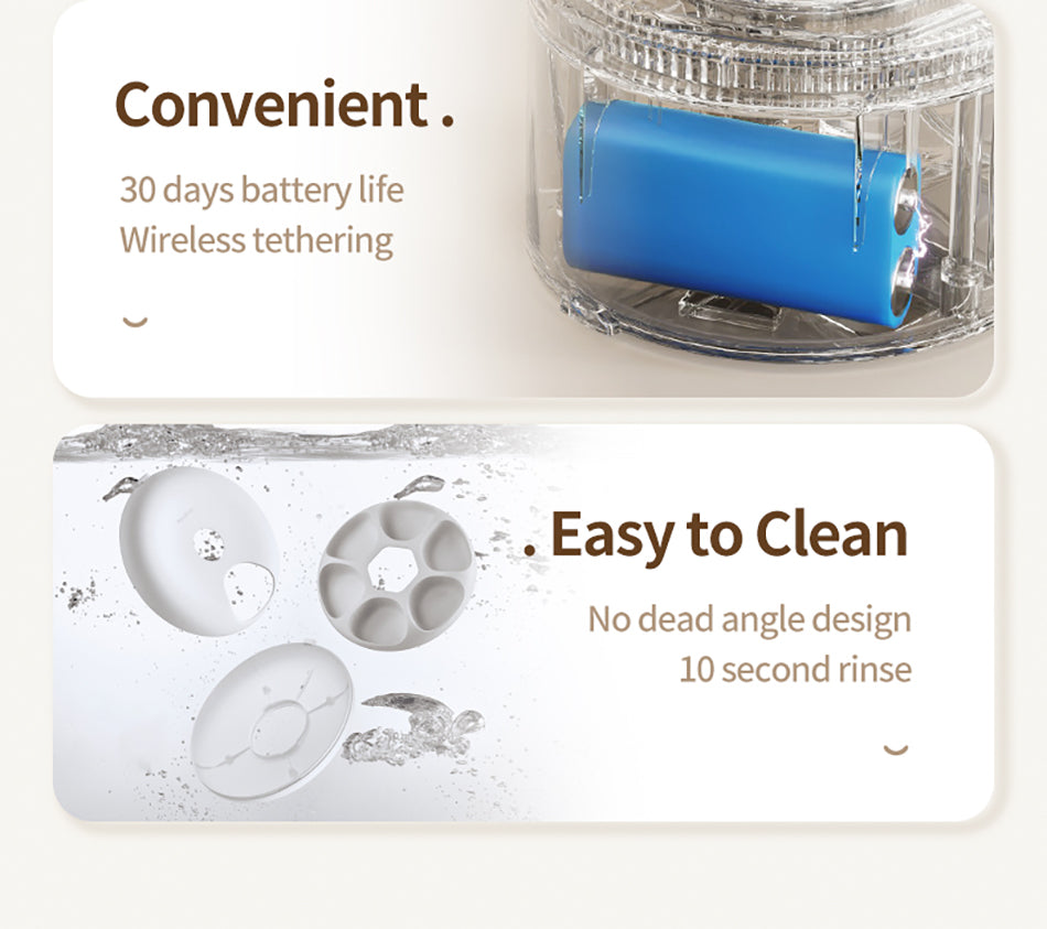 Suitable for dry food, wet food, snacks, water, goat milk, large and small freeze-dried food, medication, and nutrients.
